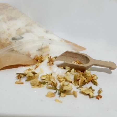 Relaxing Epsom salts floral bath soak with botanical's is the perfect way to end a long or stressful day. Simply add to a warm bath and relax your tired muscles. If you don't want the petals floating around in your bath, then simply add to an organza bag and still enjoying the benefits of the soothing salts. These come in Lavender, rose, lavender and rose and citrus essential oils, with botanical's. Each bag comes with a small wooden scoop